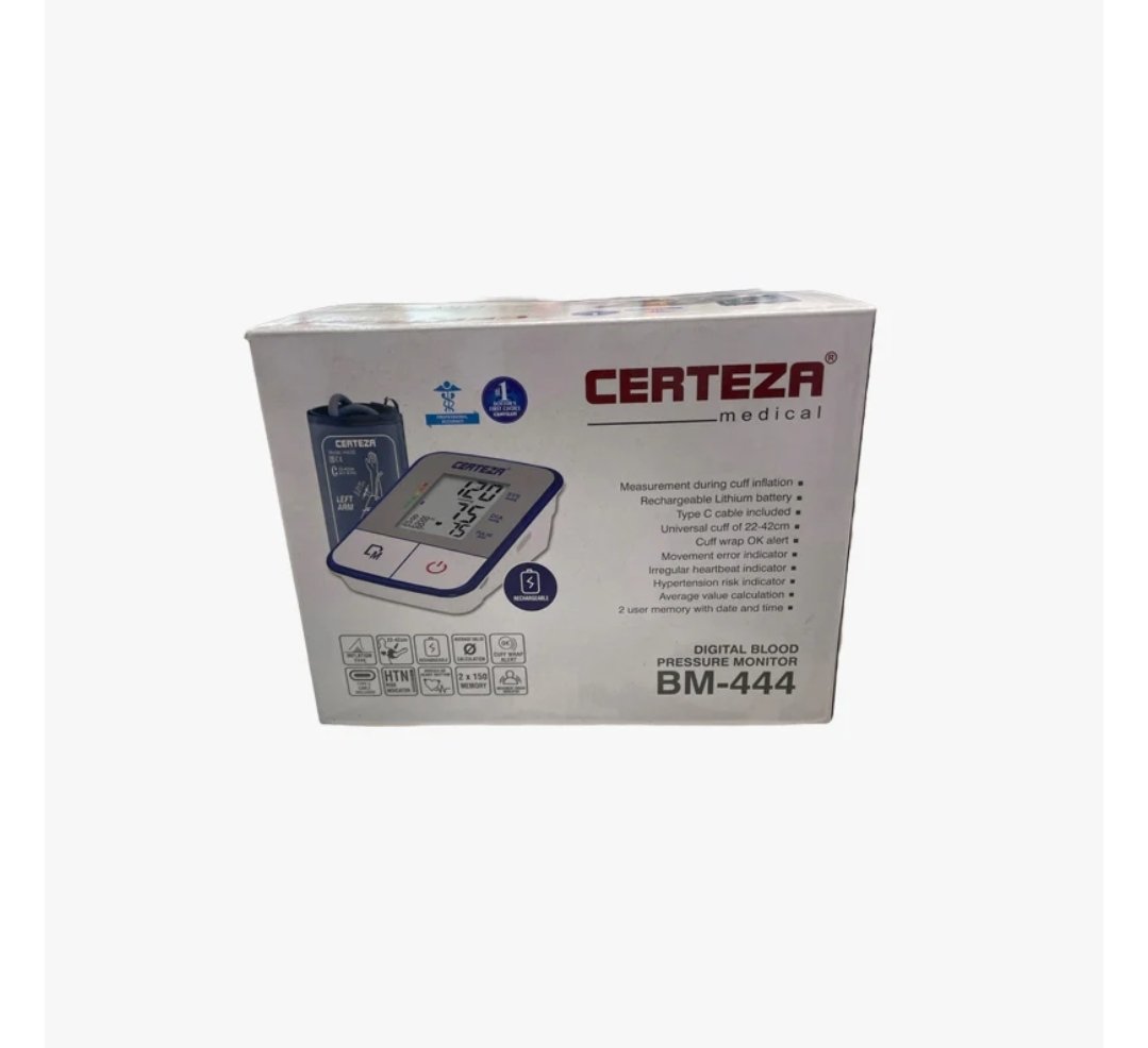 The Certeza BP 444 Digital Blood Pressure Monitor provides accurate and reliable blood pressure and pulse measurements for daily health monitoring. Designed for easy home and clinical use, it features a clear digital display and user-friendly operation.