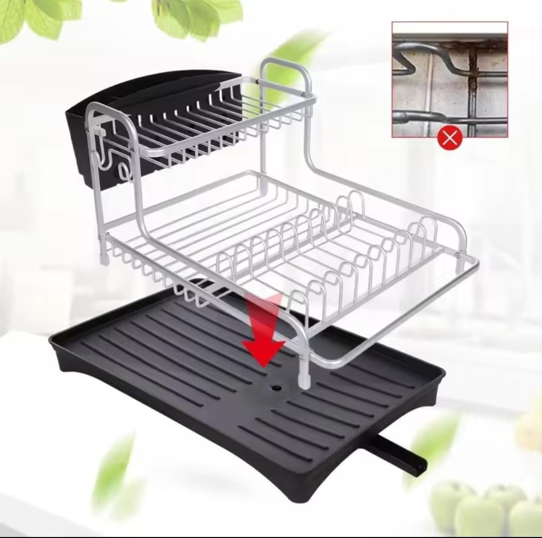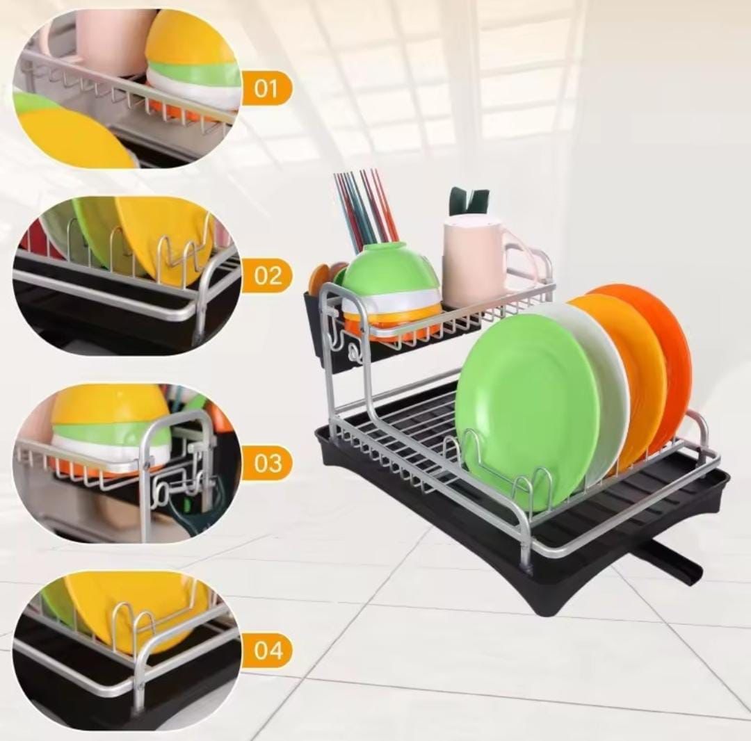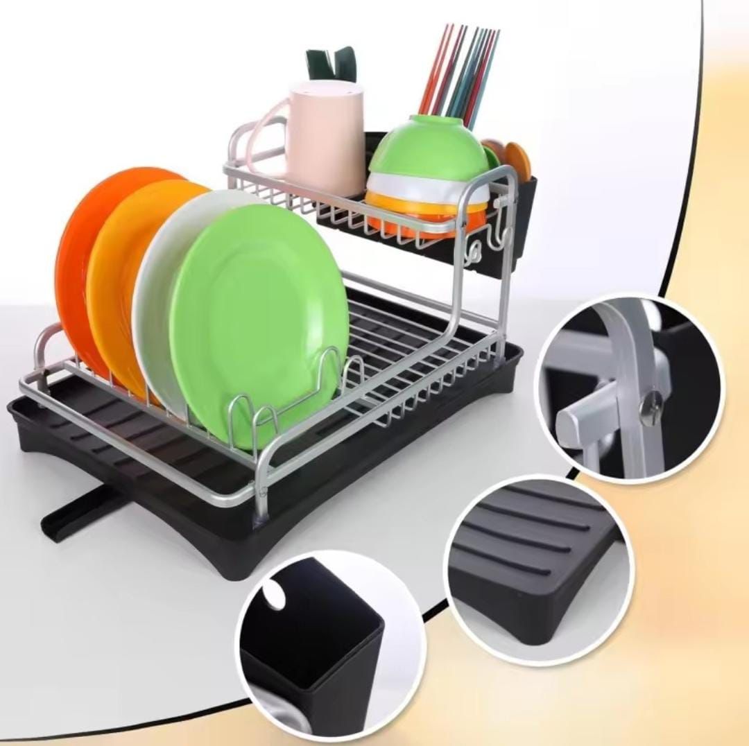 Kitchen Dish Drying Rack,Aluminum Sink Stand Organizer with Drainer,Plate Cutlery Holder,Tools Accessories,Storage Shelf