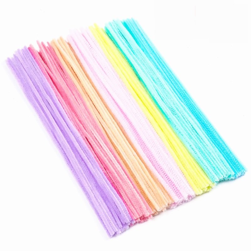 This is a pack of pastel-colored chenille stems, commonly known as pipe cleaners, used for arts and crafts projects.