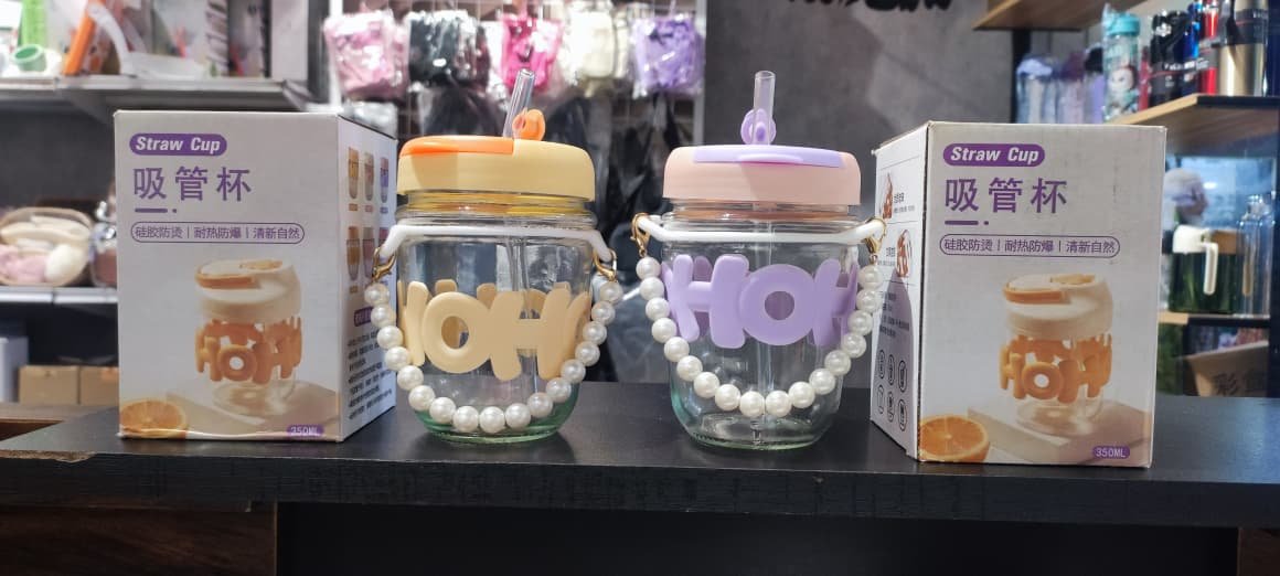 Pearl Chain Sipper Glass Cup Coffee Mug With Straw