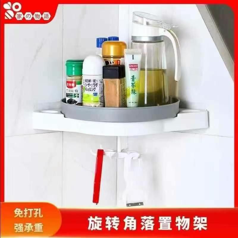 Rotating corner shelf to neatly organize bathroom essentials with easy access.